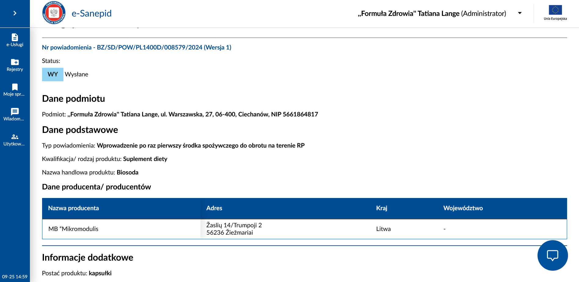 Dystrybutor: ,,Formuła Zdrowia’’ Warszawska 27, 06-400 Ciechanów