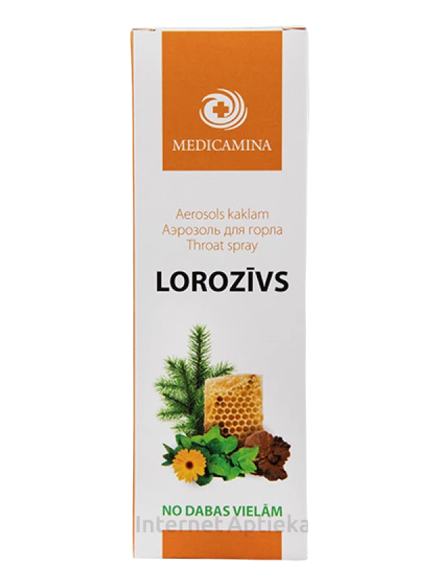 Ingredients: spray Loroziv składa się z fizjologicznie czynnych substancji naturalnych - propolisu, olejku jodłowego, mumio, mentolu i nalewki z nagietka.