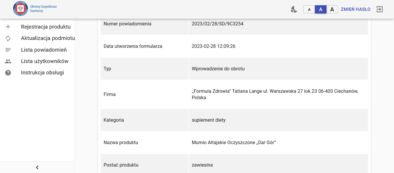 Dystrybutor: ,,Formuła Zdrowia’’ Warszawska 27, 06-400 Ciechanów